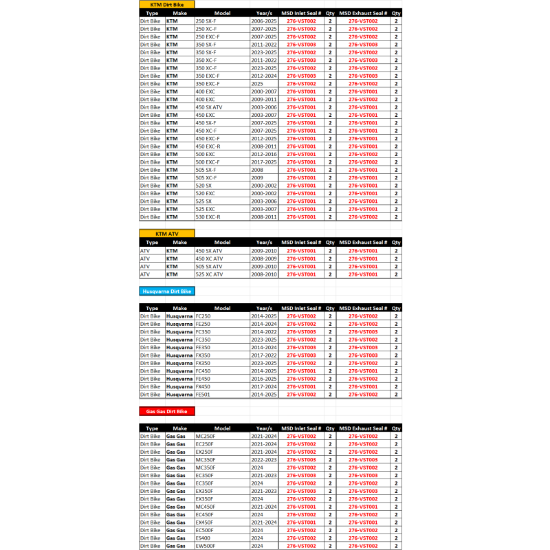 KTM SX-F350 - 2011-2022 / EXC-F350 - 2012-2024 / XCF-W350 - 2012-2024 - INTAKE & EXHAUST - Replaces OEM # 772.36.027.000