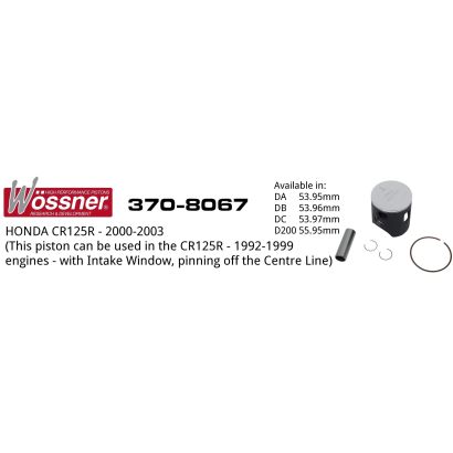 HONDA CR125R - 2000-2003 - 53.97mm (This piston can be used in the CR125R - 1992-1999 engines - with Intake Window and pinning is off the Centre Line)